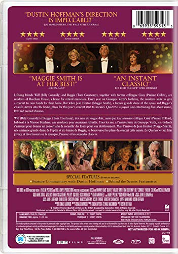Details: Beecham House is abuzz. The rumor circling the halls is that the home for retired musicians is soon to play host to a new resident. Word is, it's a star. For Reginald Paget (Tom Courtenay), Wilfred Bond (Billy Connolly) and Cecily Robson (Pauline Collins) this sort of talk is par for the course at the gossipy home. But they're in for a special shock when the new arrival turns out to be none other than their former singing partner, Jean Horton (Maggie Smith). Her subsequent career as a star soloist, and the ego that accompanied it, split up their long friendship and ended her marriage to Reggie, who takes the news of her arrival particularly hard. Can the passage of time heal old wounds? And will the famous quartet be able to patch up their differences in time for Beecham House's gala concert? ---------- Première incursion de Dustin Hoffman à la réalisation, «Le Quatuor» est une comédie mettant en vedette Maggie Smith (La franchise «Harry Potter», «Gnomeo et Juliette»), Billy Connolly («Les Voyages de Gulliver», «Le Dernier Samouraï»), Tom Courtenay («À la croisée des mondes: La boussole d'or»), et Pauline Collins («Albert Nobbs»), dans les rôles de quatre chanteurs d'opéra à la retraite, ainsi que Michael Gambon, en chef d'orchestre (La franchise «Harry Potter», «Le Discours du Roi»). «Le Quatuor» raconte l;histoire de Reggie (Courtenay), Wilf (Connolly) et Cissy (Collins) qui habitent la Maison Beecham, une résidence pour les musiciens retraités. Tous les ans, les résidents montent un spectacle pour célébrer l'anniversaire de Verdi, en plus de recuillir des fonds pour maintenir leur éstablissement. L'ex-femme de Reggie, Jean (Smith), arrive à la Maison Beecham et crée toute une commotion, jouant la diva, mais refusant de prendre part au concert. «Le Quatuor» est un scénario de Sir Ronald Harwood.