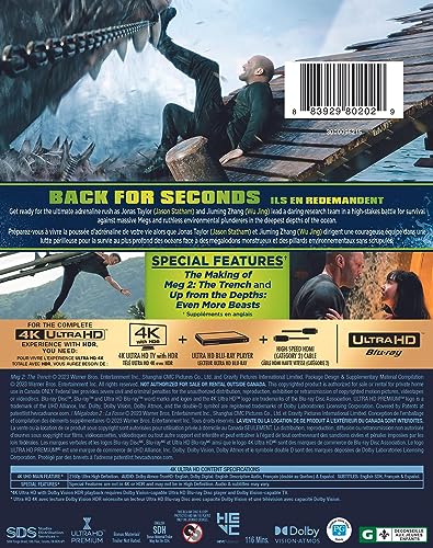 Details: Get ready for the ultimate adrenaline rush with “Meg 2: The Trench,” a literally larger-than-life thrill ride that supersizes the 2018 blockbuster and takes the action to higher heights and even greater depths with multiple massive Megs and so much more! Dive into uncharted waters with Jason Statham and global action icon Wu Jing as they lead a daring research team on an exploratory dive into the deepest depths of the ocean. Their voyage spirals into chaos when a malevolent mining operation threatens their mission and forces them into a high-stakes battle for survival. Pitted against colossal Megs and relentless environmental plunderers, our heroes must outrun, outsmart, and outswim their merciless predators in a pulse-pounding race against time.