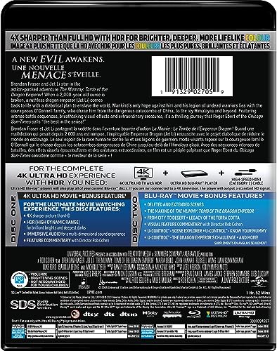 Details: Brendan Fraser and Jet Li star in the action-packed adventure The Mummy: Tomb of the Dragon Emperor! When a 2,000-year-old curse is broken, a ruthless dragon emperor (Jet Li) comes back to life with a diabolical plan to enslave the world. Mankind's only hope against him and his legion of undead warriors lies with the courageous O'Connell family, who chase him from the dangerous catacombs of China, to the icy Himalayas and beyond. Featuring intense battle sequences, breathtaking visual effects and extraordinary creatures, it's a thrilling journey that Roger Ebert of the Chicago Sun-Times calls "the best in the series!" Bonus Content: Features High Dynamic Range (HDR10) for Brighter, Deeper, More Lifelike Color Feature Commentary with Director Rob Cohen Deleted and Extended Scenes The Making of The Mummy: Tomb of the Dragon Emperor From City to Desert Legacy of the Terra Cotta ]]>