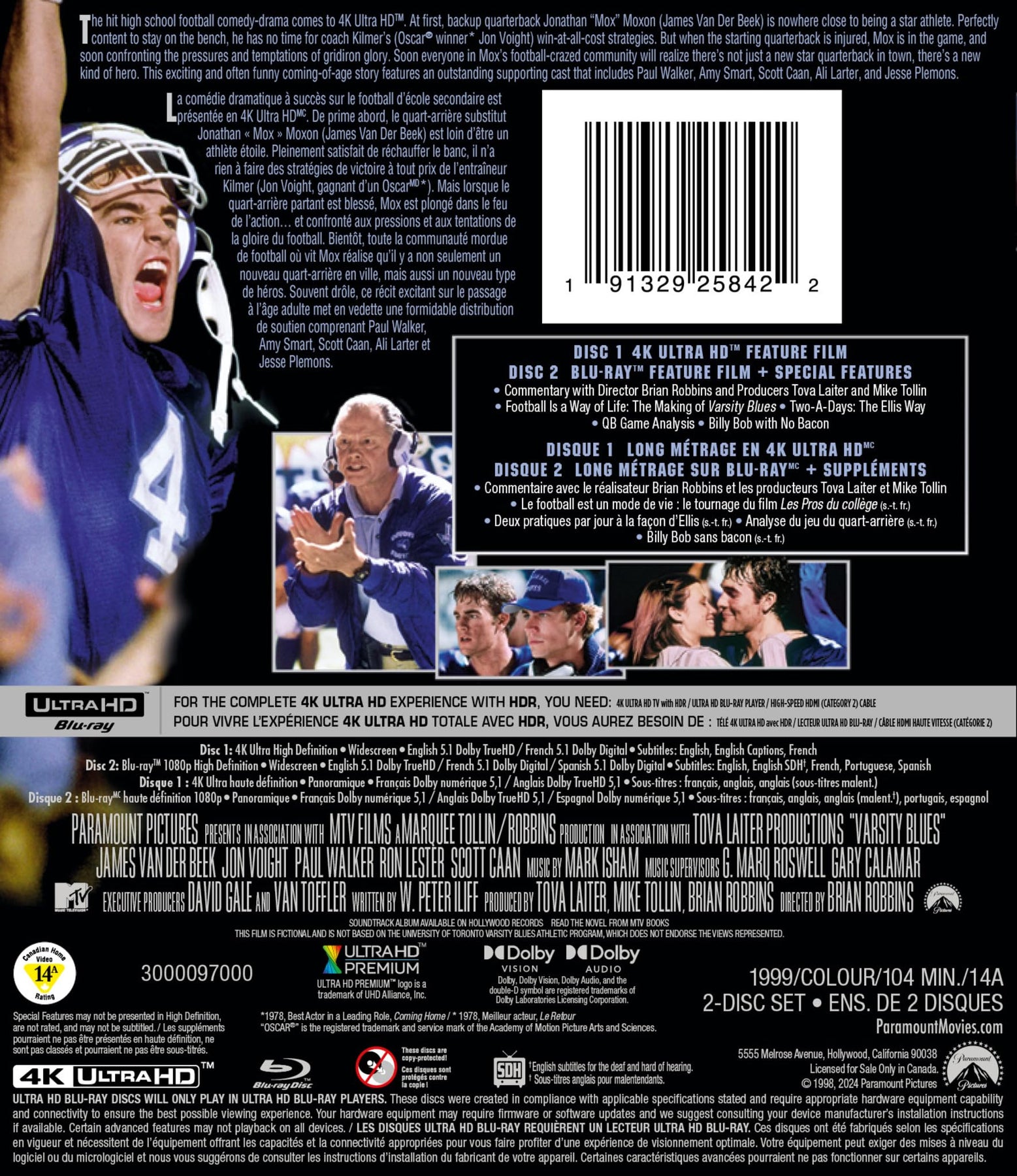 Details: The hit high school football comedy-drama comes to 4K Ultra HD. At first, backup quarterback Jonathan "Mox" Moxom (James Van Der Beek) is nowhere close to being a star athlete. Perfectly content to stay on the bench, he has no time for coach Kilmer’s (Oscar winner Jon Voight), win-at-all-cost strategies. But when the starting quarterback is injured, Mox is in the game, and soon confronting the pressures and temptations of gridiron glory. Soon everyone in Mox's football-crazed community will realize there's not just a new star quarterback in town, there's a new kind of hero. This exciting and often funny coming-of-age story features an outstanding supporting cast that includes Paul Walker, Amy Smart, Scott Caan, Ali Larter, and Jesse Plemons.