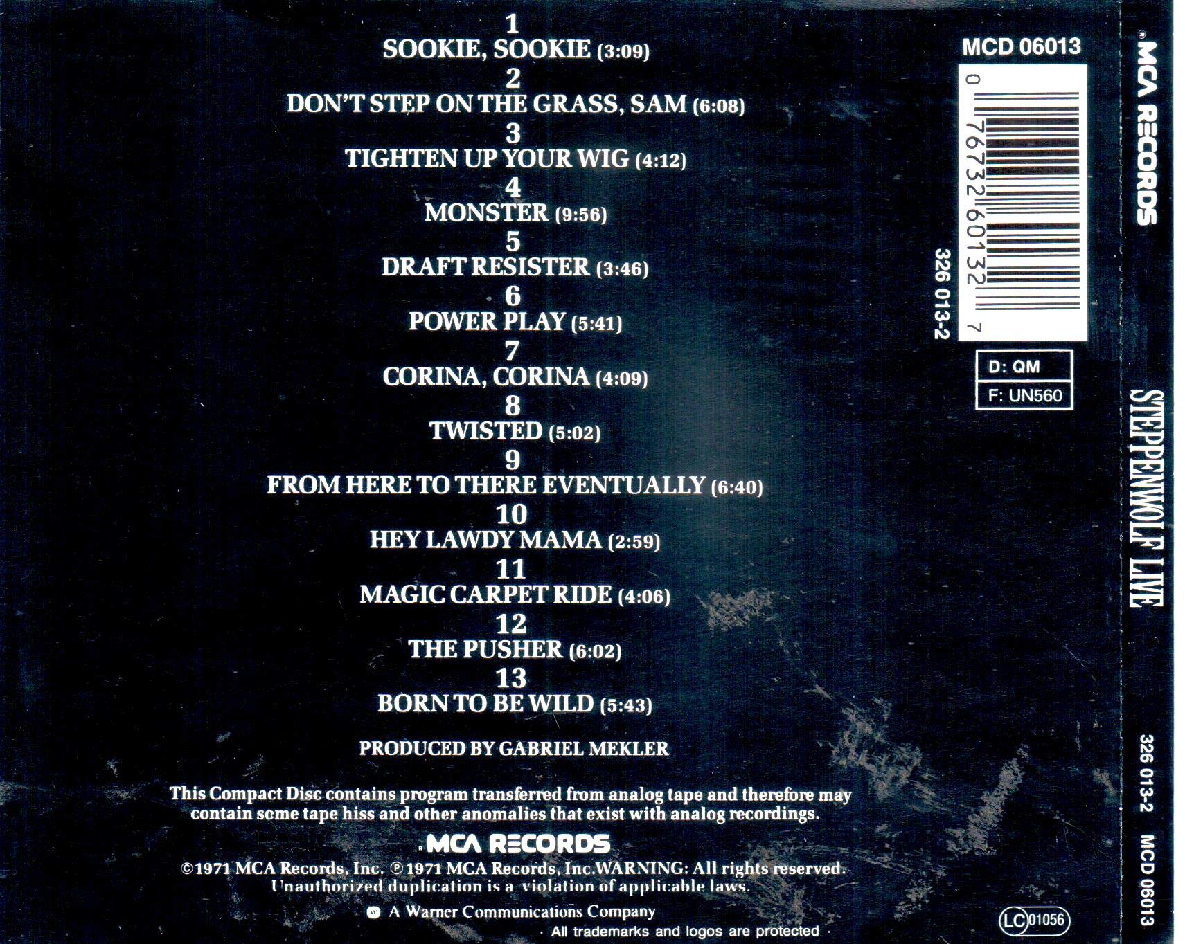 Details: Amazon.ca As Neil Young was immersing himself in the post-Beatles Sunset Strip scene, L.A. via Germany-and-Toronto musician John Kay and his Steppenwolf were also going continent-wide with their California-centric hard rock. Tracks like "Born to Be Wild" and "The Pusher" were hits in their time and remain touchstones of the era. (Would Easy Rider have been the same without the powder-keg intro of "Wild"?) This document of 1970 gigs is occasionally long-winded but always spirited, and if the protests of "Monster" and "Draft Resister" are locked in their Vietnam-era context, the pro-marijuana "Don't Step On the Grass, Sam" sounds increasingly relevant in light of continuing U.S. battles over medical pot use. Needless to say, the set of hits that ends this former double LP--especially, but not only, the funky-butt "Magic Carpet Ride"--is still right on time. A fine listen and a worthwhile alternative to the countless best-ofs bearing the group's name. --Rickey Wright Product Description Steppenwolf