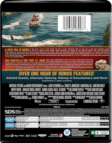 Details: Product Description A new era is born in the iconic Jurassic World series. We join a covert extraction team as they race to the most dangerous place on Earth, an island research facility where dinosaurs too deadly for the original Jurassic Park were left behind. Their mission: to recover DNA from three colossal dinosaurs and unlock a drug with miraculous benefits for humanity. However, in a terrain populated by perils, they come face-to-face with a shocking discovery that has been hidden from the world for decades. Iconic action superstar Scarlett Johansson, Jonathan Bailey and two-time Oscar® winner Mahershala Ali star in this action-packed epic from dynamic director Gareth Edwards (Rogue One: A Star Wars Story) and writer David Koepp (Jurassic Park). Bonus Content: Features Dolby Vision and HDR10 for Brighter, Deeper, More Lifelike Color Alternate Opening Deleted Scenes Jurassic World Rebirth: Hatching a New Era Gag Reel Meet Dolores Munched: Becoming Dino Food A Day at Skywalker Sound Hunting for Easter Eggs Feature Commentary with Director Gareth Edwards, Production Designer James Clyne, and First Assistant Director Jack Ravenscroft Feature Commentary with Director Gareth Edwards, Editor Jabez Olssen, and Visual Effects Supervisor David Vickery ]]> Special Features Features Dolby Vision and HDR10 for Brighter, Deeper, More Lifelike Color Alternate Opening Deleted Scenes Jurassic World Rebirth: Hatching a New Era Gag Reel Meet Dolores Munched: Becoming Dino Food A Day at Skywalker Sound Hunting for Easter Eggs Feature Commentary with Director Gareth Edwards, Production Designer James Clyne, and First Assistant Director Jack Ravenscroft Feature Commentary with Director Gareth Edwards, Editor Jabez Olssen, and Visual Effects Supervisor David Vickery ]]>