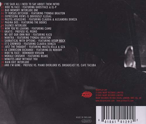 Details: Features guest artists such as GZA, Ghostface, Aesop Rock, Masta Killa, Beans , Broadcast & Cafe Tacuba. Warp. 2005.
