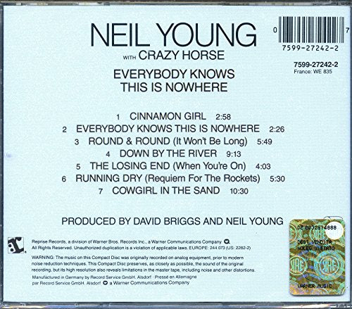 Details: Amazon.ca Opening with the methodical, hard-rocking "Cinnamon Girl"--still one of the singer/songwriter's most-shouted requests in concert--Young's second solo album introduces the cockeyed harmonies and sloppy, chiming guitars of Crazy Horse. His wide swings from soft-spoken country-folk ("Round & Round [It Won't Be Long]") to menacing metal (the punch line to "Down by the River" is "I shot my baby") indicate the multiple personalities in Young's future. His second album of 1969 broadcasts a sincere passion for the peace-and-love '60s (dig the long guitar solos) but also predicts the dark introspection of "Tonight's the Night". --Steve Knopper Product description Brand New