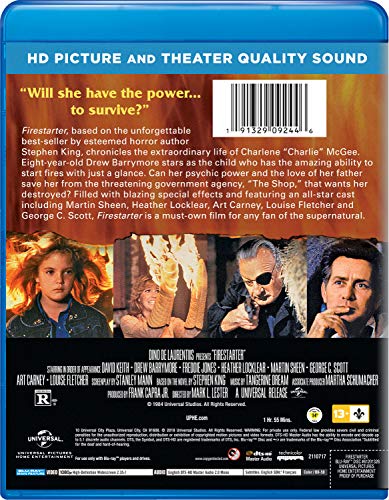 Details: Firestarter, the unforgettable best-seller by esteemed horror author Stephen King, chronicles the extraordinary life of Charlene "Charlie" McGee. Eight-year-old Drew Barrymore stars as the child who has the amazing ability to start fires with just a glance. Can her psychic power and the love of her father save her from the threatening government agency, "The Shop," that wants her destroyed? Filled with blazing special effects and featuring an all-star cast including Martin Sheen and Heather Locklear, Art Carney, Louise Fletcher and George C. Scott, Firestarter is a must-own film for any fan of the supernatural. ]]>