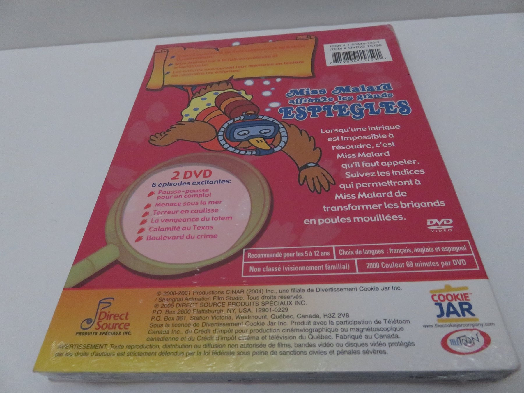 Details: Brand new item that is sealed. There is a black sticker on the front that is covering the original store selling price sticker which does not affect the condition of the DVD. There may have the seller's item label sticker placed on the item, but this label sticker is removable. A Miss Mallard Mystery is a Chinese-Canadian mystery animated series produced by Cinar and Shanghai Animation Film Studio for the Teletoon network and OTV, loosely based on the Robert Quackenbush book series The Miss Mallard Mysteries.