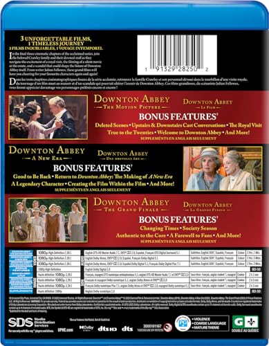 Details: Product Description In the final three cinematic chapters of the acclaimed series, join the beloved Crawley family and their devoted staff as they navigate the excitement of a royal visit, the filming of a silent movie at the estate, and a scandal that could shape the future of Downton Abbey itself. From writer Julian Fellowes, these grand films will have you cheering for your favourite characters again and again! Bonus Content: Disc 1 - Downton Abbey (2019): Cast Conversations The Royal Visit True to the Twenties Deleted Scenes Welcome to Downton Abbey The Brilliance of Julian Fellowes Downton Abbey Series Recap Feature Commentary with Director Michael Engler Disc 2 - Downton Abbey: A New Era: Good to Be Back Return to Downton Abbey: The Making of A New Era A Legendary Character Creating the Film… Within the Film Her Majesty's Yacht Britannia Spill the Tea (Time) Feature Commentary with Director Simon Curtis Disc 3 - Downton Abbey: The Grand Finale: Changing Times Society Season Authentic to the Core A Farewell to Fans Downton Abbey Celebrates The Grand Finale Feature Commentary with Director Simon Curtis and Actress Elizabeth McGovern ]]> Special Features Disc 1 - Downton Abbey (2019): Cast Conversations The Royal Visit True to the Twenties Deleted Scenes Welcome to Downton Abbey The Brilliance of Julian Fellowes Downton Abbey Series Recap Feature Commentary with Director Michael Engler Disc 2 - Downton Abbey: A New Era: Good to Be Back Return to Downton Abbey: The Making of A New Era A Legendary Character Creating the Film… Within the Film Her Majesty's Yacht Britannia Spill the Tea (Time) Feature Commentary with Director Simon Curtis Disc 3 - Downton Abbey: The Grand Finale: Changing Times Society Season Authentic to the Core A Farewell to Fans Downton Abbey Celebrates The Grand Finale Feature Commentary with Director Simon Curtis and Actress Elizabeth McGovern ]]>