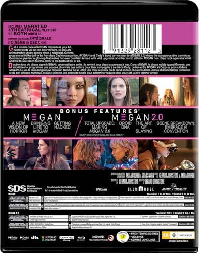 Details: Get a double dose of M3GAN mayhem as your A.I. bestie boots up for two killer thrillers. In M3GAN, unimaginable chaos comes when a roboticist, Gemma, programs a lifelike doll to be her niece Cady's companion. M3GAN and Cady's bond carries over to M3GAN 2.0, where the dangerous diva convinces Gemma to give her a glow-up that makes her even deadlier. Armed with wild upgrades and her iconic attitude, M3GAN now claps back against a lethal android to see which techno-terror is the baddest bot of all.