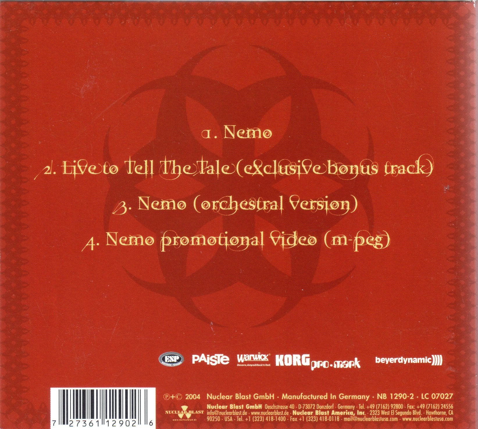 Details: Taken from the Finnish metal band's 2004 album 'Once'. The title track is b/w three non-LP tracks, 'Live To Tell The Tale', 'Nemo' (Orchestral Version, & Video). Strictly limited digipak edition. Nuclear Blast.