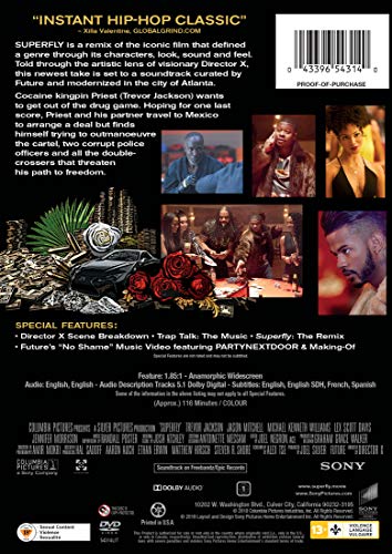 Details: SUPERFLY is a remix of the iconic film that defined a genre through its characters, look, sound and feel. Told through the artistic lens of visionary, Director X, this newest take is set to a soundtrack curated by Future and modernized in the city of Atlanta. An action-packed film that follows Youngblood Priest [Trevor Jackson] as he attempts to achieve his “American Dream” all while redefining The Hustle.