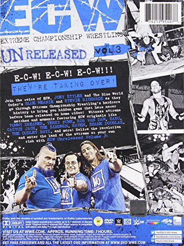 Details: Stevie Richards, Blue Meanie, and Joey Styles dig deep into the ECW Vault to present an array of forgotten classics and unearthed gems in ECW Unreleased Vol. 3. Witness 9 hours of never-before-seen content including Rob Van Dam, Tazz, Cactus Jack, Tommy Dreamer, Rey Mysterio, and more! Several lost battles are presented, such as:_x000D_ _x000D_ Raven vs. Tommy Dreamer in Japan from August 1996_x000D_ Sabu vs. Cactus Jack- Holiday Hell 1995_x000D_ Rey Mysterio & 911 vs. Eliminators- January 1996_x000D_ Tazz vs. Rob Van Dam- March 1997_x000D_