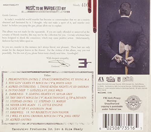 Details: Eminem returns with an album title that pays homage to Alfred Hitchcock. The album features collaborations with Ed Sheeran, Skylar Grey, Royce Da 5'9", Black Thought, Q-Tip, Denaun, White Gold, Young M.A, KXNG Crooked, Joell Ortiz, Don Toliver, Anderson .Paak and Juice WRLD.