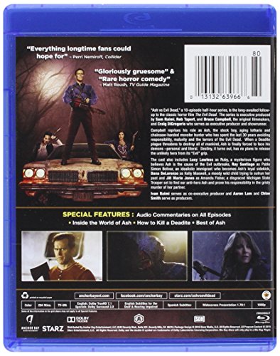 Details: “Ash vs Evil Dead,” a 10-episode, half-hour series, is the long-awaited follow-up to the classic horror film franchise The Evil Dead. The series follows Ash, the stock boy, aging lothario and chainsaw-handed monster hunter who has spent the last 30 years avoiding responsibility, maturity and the terrors of the Evil Dead. When a Deadite plague threatens to destroy all of mankind, Ash is finally forced to face his demons –personal and literal. Destiny, it turns out, has no plans to release the unlikely hero from its “Evil” grip. The cast is led by Bruce Campbell as Ash Williams, Lucy Lawless as Ruby a mysterious figure who believes Ash is the cause of the Evil outbreaks, Ray Santiago as Pablo Simon Bolivar, an idealistic immigrant who becomes Ash’s loyal sidekick, Dana DeLorenzo as Kelly Maxwell, a moody wild child trying to outrun her past and Jill Marie Jones as Amanda Fisher, a disgraced Michigan State Trooper set to find our anti-hero Ash and prove his responsibility in the grisly murder of her partner. The series is executive produced by Sam Raimi, Rob Tapert, and Bruce Campbell, the original filmmakers of the franchise, and Craig DiGregorio (“Chuck”), who serves as executive producer and showrunner.
