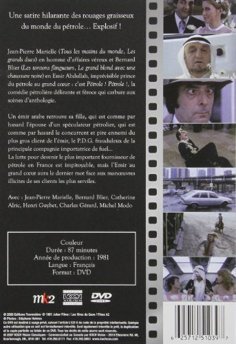 Details: Jean-Pierre Marielle (Tous les matins du monde, Les grands ducs) en homme d'affaires véreux et Bernard Blier (Les tontons flingueurs, Le grand blond avec une chaussure noir) en Emir Abdullah, imprévisible prince du pétrole au grand coeur: c'est Pértrole! Pétrole!, la comédie pétrolière délirante et féroce qui carbure aux scènes d'anthologie. Un émir arabe retrouve sa fille, qui est comme par hasard l'épouse d'un spéculateur pétrolier, qui est comme par hasard le concurrent et pire ennemi du plus gros client de l'émir, le P.D.G. frauduleux de la principale compagnie importatrice de fuel... La lutte pour devenir le plus important fournisseur de pétrole en France est impitoyable, mais l'Emir au grand coeur aura le dernier mot face aux manoeuvres illicites de ses clients les plus serviles.