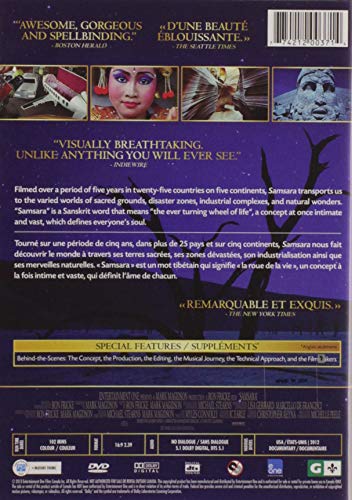 Details: Prepare yourself for an unparalleled sensory experience. Samsara reunites director Ron Fricke and producer Mark Magidson, whose award-winning films Baraka and Chronos were acclaimed for combining visual and musical artistry. Samsara is a Sanskrit word that means "the ever turning wheel of life" and is the point of departure for the filmmakers as they search for the elusive current of interconnection that runs through our lives. Filmed over a period of almost five years and in twenty-five countries, Samsara transports us to sacred grounds, disaster zones, industrial sites, and natural wonders. By dispensing with dialogue and descriptive text, Samsara subverts our expectations of a traditional documentary, instead encouraging our own inner interpretations inspired by images and music that infuses the ancient with the modern. ----- Regard sur les splendeurs humaines et naturelles du monde, ainsi que sur ses horreurs. Entre les catastrophes provoquées par l'homme et celles déclenchées par la nature, le monde dit civilisé n'est finalement que peu de choses.