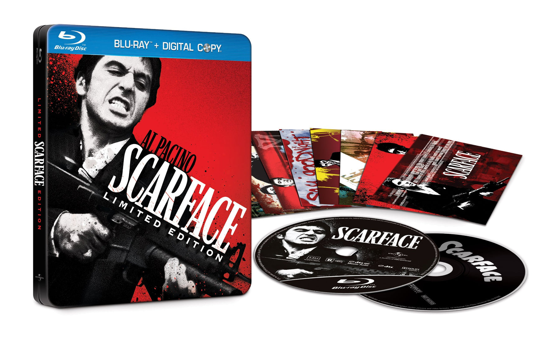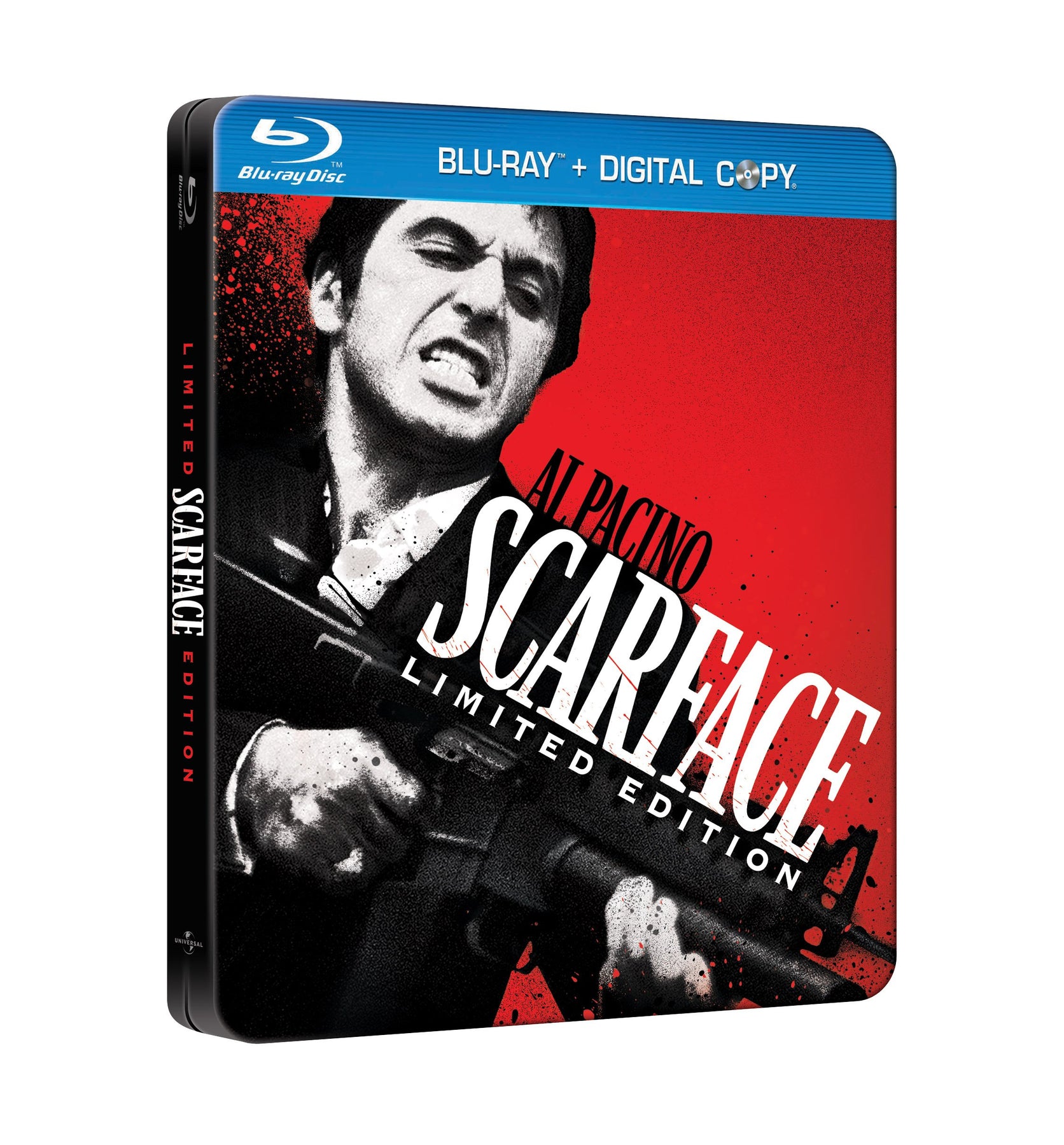 Details: Starring Academy Award winner Al Pacino (The Godfather) in an unforgettable performance as one of the most ruthless gangsters ever depicted on film and co-starring Academy Award nominee Michelle Pfeiffer (The Fabulous Baker Boys), Scarface is the rags-to-riches story of Cuban immigrant Tony “Scarface” Montana, who finds wealth, power and passion beyond his wildest dreams…at a price he never imagined. From acclaimed director Brian De Palma (Carlito’s Way) and Oscar-winning writer Oliver Stone (Born on the Fourth of July), this action-packed Blu-ray features an all-new eye-popping remastered picture, explosive 7.1 audio track and never-before-seen bonus features. One of the most influential gangster epics of all time, the Scarface Limited Edition Blu-ray also includes collectible SteelBook packaging, a digital copy of the film, a DVD of the 1932 version of Scarface plus 10 original art cards for a limited time only.