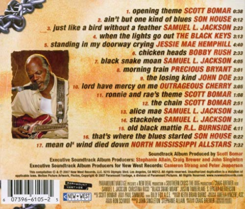 Details: Product Description A darkly modern tale of love, betrayal, sex, and salvation set in the Deep South: such is Craig Brewer's Black Snake Moan, starring Samuel L. Jackson, Christina Ricci, Justin Timberlake and E-40. The film is the 2nd feature by Writer-Director Craig Brewer, whose 1st film Hustle & Flow won an Academy Award for Best Song and the 2005 Sundance Film Festival Audience Award. As Hustle & Flow depicted the underground world of Dirty South rap, Black Snake Moan, which was filmed in Memphis, Tennessee and surrounding environs, employs as a setting the contemporary North Mississippi hill country music scene, revealing its sound through purveyors like the North Mississippi Allstars, RL Burnside, and Jessie Mae Hemphill. The film and soundtrack also feature artists such as The Black Keys, John Doe, and Samuel L Jackson, making his musical debut singing and playing guitar. Amazon.ca This soundtrack to the film written and directed by Craig Brewer is as steeped in the Southern blues as his Hustle and Flow was in hip-hop. The biggest surprise here is how well actor Samuel L. Jackson (who seems to have a thing for "Snake" films) holds his own as a blues singer against selections from Son House and RL Burnside. He sounds like a throwback to the classic Delta bluesmen on "Just Like a Bird Without a Feather," does a convincing take on the Blind Lemon Jefferson title track, and rocks the juke joint on "Alice Mae" and a down-and-dirty recast of "Stack-O-Lee." Produced by the Bo-Keys' Scott Bomar (who also scored Brewer's previous movie), the 17-cut soundtrack features a kaleidoscopic array of blues, from the primal throb of the Black Keys' "When the Lights Go Out" and the funk of Bobby Rush's classic "Chicken Heads" to the spiritual lilt of Precious Bryant's "Morning Train" and the North Mississippi Allstars' expansive finale, "Mean Ol' Wind Died Down." --Don McLeese
