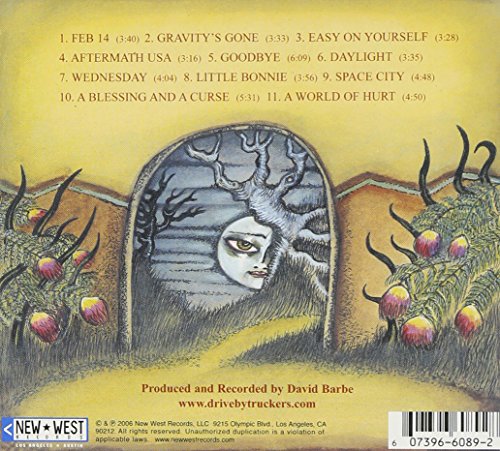 Details: Amazon.ca Known for two big-idea concept albums, Southern Rock Opera (dedicated to Lynyrd Skynyrd) and The Dirty South (a 70+ minute exploration of their Alabama roots), the Drive-by Truckers here go economical with a 45+ minute rock album. Three singers (all guitarists, to boot) ensure that moods shift often, even with every voice bearing a sand-blasted quality that grit-pocks everything. Patterson Hood tackles most of the tunes, sounding like a roughed-up Faces on "Aftermath USA," detailing drugs and deterioration against boogied-up guitars, and sounding a more sensitive side on "Goodbye" and "Little Bonnie" (another in a line of Truckers' funeral tunes). With a barrel-chested croak of a voice, Mike Cooley runs down the rudderless-ness of love and desperation on "Gravity's Gone" and slow, acoustic tenderness on "Space City." The loudest guitarist, Jason Isbell, takes on two tracks: "Easy on Yourself" and "Daylight," where he alternates between wry fury and a yearning pine for more time, more space. Isbell basks in an array of slide-guitar throwdowns, always leaving a signature sound the way Skynyrd's Allen Collins and Gary Rossington did in their glory days. All in all, this is a calmer Truckers set, less ragged and more polished--but rest assured: Their live sets still smoke like their 40 Watt Club DVD from 2005. --Andrew Bartlett Product Description The Drive-By Truckers are back with another kickass CD. a Blessing and a Curse is the band's hardest rockin' CD yet. It is fitting that the final words on the album are 'It's great to be alive.' the songs on this record illustrate the triumphant struggle it takes to survive and thrive in this world. New West. 2006.