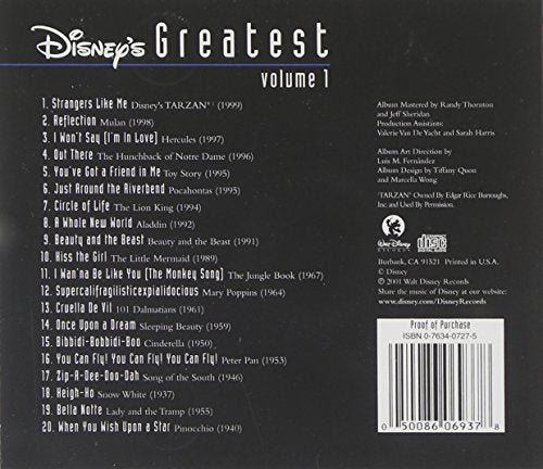 - Disney's Greatest, Vol. 1 by Disney's Greatest (2000-07-30)