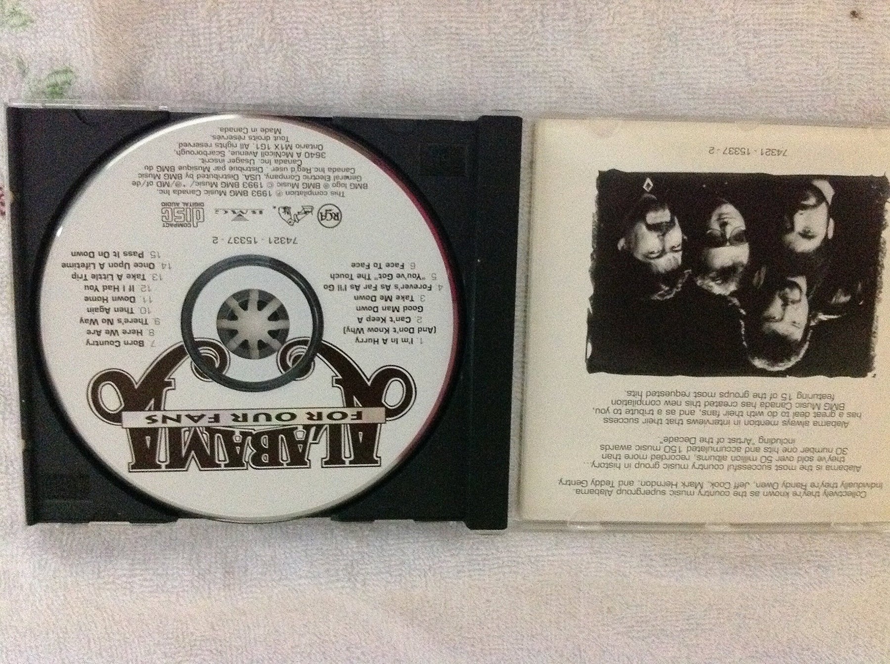 Details: CD release of ALABAMA For Our Fans from 1993. 15 tracks. Includes: 1. I'm In A Hurry (And Don't Know Why) 2:50 2. Can't Keep A Good Man Down 3:40 3. Take Me Down 4:57 4. Forever's As Far As I'll Go 3:35 5. You've Got The Touch 4:16 6. Face To Face 3:01 7. Born Country 3:18 8. Here We Are 2:51 9. There's No Way 4:13 10. Then Again 3:44 11. Down Home 3:28 12. If I Had You 3:34 13. Take A Little Trip 3:18 14. Once Upon A Lifetime 4:18 15. Pass It On Down 4:53