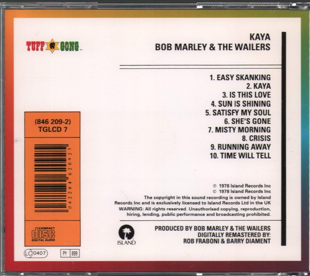 Details: Amazon.ca Kaya was the Wailers' final studio LP before 1979's Survival, arguably the album on which Bob Marley and his band reached pure pop-rock bliss (with a reggae base, natch!) via melodic tunes like "Africa Unite" and "Ride, Natty, Ride". Released in 1978, Kaya saw Marley moving more in that direction, musically, with pop melodies developing and even lead guitar piling on top of the syncopated reggae backbeats. Kaya concentrates mostly on "lighter" subjects--namely matters of the heart or just feeling good (read: screw art, let's dance)--as titles like the joyful "Easy Skanking", the beautiful "Is This Love", "Satisfy My Soul", and "Misty Morning" surely illustrate. --Bill Holdship