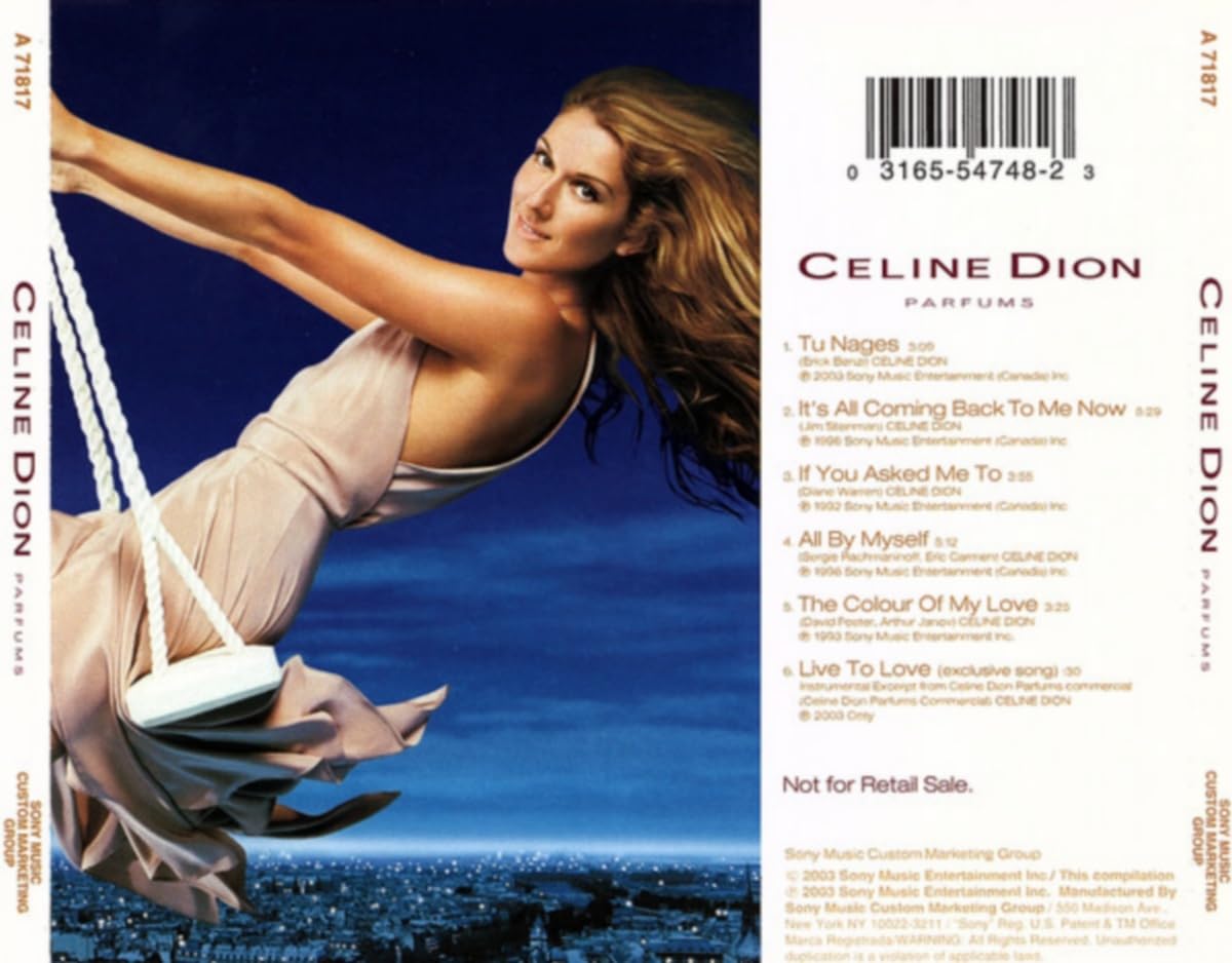 Details: 1 Tu Nages 3:09 2 It's All Coming Back To Me Now 5:29 3 If You Asked Me To 3:55 4 All By Myself 5:12 5 The Colour Of My Love 3:25 6 Live To Love 0:30 / 6: 'Live To Love' (exclusive song) instrumental excerpts from Céline Dion Parfums Commercial.