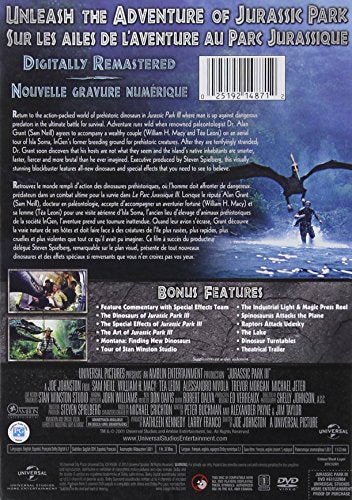 Details: Product Description Return to the action-packed world of prehistoric dinosaurs in Jurassic Park III where man is up against dangerous predators in the ultimate battle for survival. Adventure runs wild when renowned paleontologist Dr. Alan Grant (Sam Neill) agrees to accompany a wealthy couple (William H. Macy and Téa Leoni) on an aerial tour of Isla Sorna, InGen's former breeding ground for prehistoric creatures. After they are terrifyingly stranded, Dr. Grant soon discovers that his hosts are not what they seem and the island's native inhabitants are smarter, faster, fiercer and more brutal than he ever imagined. Executive produced by Steven Spielberg, this visually stunning blockbuster features all-new dinosaurs and special effects that you need to see to believe. Special Features The Making of Jurassic Park III Feature Commentary with Special Effects Team The New Dinosaurs of Jurassic Park III Tour of Sam Winston Studio A Visit to ILM Dinosuar Turntables Behind-the-Scenes Storyboards to Final Feature Comparison Jurassic Park III Archives Theatrical Trailer Montana: Finding New Dinosaurs Production Ratings Cast and Filmmakers DVD-ROM Features J.P. Institute