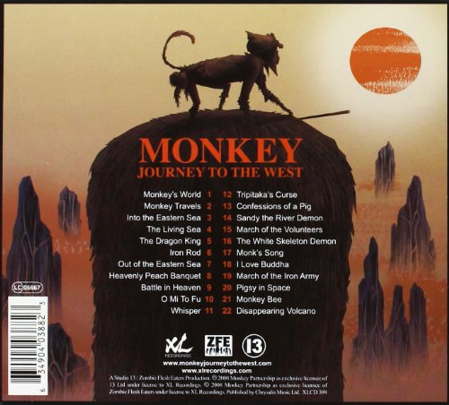 Details: MONKEY is the new project for Damon Albarn and Jamie Hewlett. the people who brought you Gorillaz. Damon on music production and Jamie on graphics. the Gorillaz' masterminds have now mutated into Monkey, and bring you 'JOURNEY TO THE WEST'. Recorded in London and Beijing over the last 12 months, the album draws upon the music Damon composed (and the visuals Jamie created) for the Chinese opera production of the same name, based on an ancient Chinese story, which was the basis for the TV Monkey Magic series. The stage version, "Monkey: Journey to the West" made its London debut at the Royal Opera House in July 2008. You could never accuse Damon Albarn of resting on his laurels. Whether it's forming supergroups (The Good, The Bad & The Queen), working with cult animators (The Gorillaz) or making music with musicians from Mali, the former Blur frontman has nurtured a restless, questing spirit not normally encountered in Britop stars. As if to underline his diverse interests, he now turns his attention to Chinese theatre. Monkey: Journey to the West is a theatrical collaboration between Albarn (music), Jamie Hewlett of Gorillaz fame (designs, costumes) and Chinese opera specialist Chen Shi-Zheng. The show itself is an explosive 90-minute circus featuring Chinese acrobats, martial arts experts and contortionists, though the album condenses the experience into 22 songs lasting an hour or so. Recorded in London and Beijing with a mix of European and Chinese musicians, Monkey ... is a genuine attempt at East-West fusion. Featuring a dizzying array of instrumentation--rock guitars, electronics, harps, mandolins, drum machines, strings, plinky-plonk keyboards, giggling girls, chants, even pigs--it's the sort of project that could so easily have gone awry. Yet Albarn, who allegedly mastered the Chinese pentatonic scale, seems to have made it work. Songs like the fluttery "Heavenly Peach Banquet" and the wistful "The Living Sea" are utterly beguiling, and stand in stark contrast to guitar-heavy behemoths like "Battle in Heaven" and the climactic "Monkey Bee." These longer songs are punctuated with incidental pieces such as "Iron Rod", "Into the Eastern Sea" and "Out of the Eastern Sea". While such interludes may distract from a 'normal' album experience, there's enough melodious charm and imaginative whimsy scattered throughout to satisfy even ardent skeptics. --Paul Sullivan