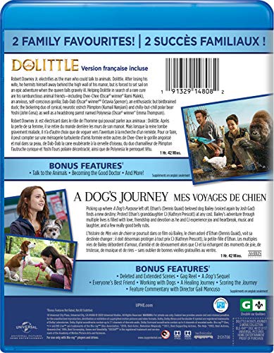 Details: Dolittle: Robert Downey Jr. electrifies as the man who could talk to animals: Dolittle. After losing his wife, he hermits himself away behind the high wall of his manor, but is forced to set sail on an epic adventure when the queen falls gravely ill. Helping Dolittle in search of a rare cure are his rambunctious animal friends—including Chee-Chee (Oscar® winner Rami Malek), an anxious, self-conscious gorilla; Dab-Dab (Oscar® winner Octavia Spencer), an enthusiastic but bird-brained duck; the bickering duo of cynical, neurotic ostrich Plimpton (Kumail Nanjiani) and chilly-but-chill polar bear Yoshi (John Cena); as well as a headstrong parrot named Polynesia (Oscar® winner Emma Thompson). A Dog's Journey: Picking up where A Dog's Purpose left off, Ethan's (Dennis Quaid) beloved dog Bailey (voiced again by Josh Gad) finds a new destiny: Protect Ethan's granddaughter CJ (Kathryn Prescott) at any cost. Bailey's adventure through multiple lives is filled with love, friendship and devotion as he and CJ experience joy and heartbreak, music and laughter, and a few really good belly rubs. Bonus Content: Disc 1 - Dolittle: Talk to the Animals RDJ & Harry: Mentor and Mentee Becoming the Good Doctor Antonio Banderas: Pirate King The Wicked Dr. Mudfly A Most Unusual House Disc 2 - A Dog's Journey: Deleted & Extended Scenes Gag Reel A Dog's Sequel Everyone's Best Friend Working with Dogs A Healing Journey Scoring the Journey Feature Commentary with Director Gail Mancuso ]]>