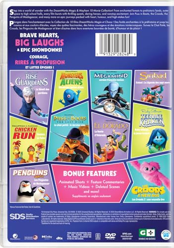 Details: Product Description Step into a world of wonder with the DreamWorks Magic & Mayhem 10-Movie Collection! From enchanted forests to prehistoric lands, outer space to high school halls, every film bursts with thrilling quests, daring heroes, and nonstop excitement. Join Puss in Boots, the Croods, the Penguins of Madagascar, and many more on epic journeys packed with heart, humor, and high-stakes fun! Bonus Content: Disc 1 - The Croods: A New Age: Dear Diary: World's First Pranks Family Movie Night: Little Red Bronana Bread Gag Reel To: Gerard Deleted Scenes The Croods' Family Album The Evolution Of… How to Draw: Caveman Style Famileaf Album Stone Age Snack Attack Feature Commentary with Director Joel Crawford, Producer Mark Swift, Head of Story Januel Mercado and Editor Jim Ryan Disc 2 - Sinbad: Legend of the Seven Seas: Cyclops Island The Making of Sinbad Art Gallery The Voice of Spike Filmmakers' Commentary Disc 3 - Penguins of Madagascar: Top Secret Guide to Becoming an Elite Agent Madagascar Mash Up Cheezy Dibbles Ad Gallery Disc 4 - Chicken Run: Poultry in Motion: The Making of Chicken Run The Hatching of Chicken Run Feature Commentary with Peter Lord & Nick Park Disc 5 - Puss in Boots: The Last Wish: The Trident Deleted Scenes A Cast of Characters In the Beginning Jack Horner's Line-O-Rama "Fearless Hero" Lyric Video How to Draw the Purrfect Pawtrait How to Make a Paper Perrito Kitty Cam Feature Commentary with Director Joel Crawford, Co-Director Januel P. Mercado, Producer Mark Swift, Editor James Ryan and Head of Story Heidi Jo Gilbert Disc 6 - Monsters vs. Aliens: Modern Monster Movie-Making Tech of MVA Deleted Scenes Filmmakers' Commentary Disc 7 - Megamind: Meet the Cast of Megamind Deleted Scenes Filmmakers' Commentary Disc 8 - The Road to El Dorado: The Making of The Road to El Dorado The Basics of Animation: The Color Script Read-Along Elton John Video "Someday Out of the Blue" Filmmakers' Commentary Disc 9 - Rise of the Guardians: Dreamers & Believers Sandy's Dream Guide Filmmakers' Commentary Disc 10 - Ruby Gillman, Teenage Kraken: Deleted Scenes with Intros by Co-Director Faryn Pearl Squad Solidarity: Adventures in ADR The Kraken: Myth or Monster Meet the Gillman Cast The Kraken Krew: Meet the Humans Behind the Gillmans Prom Stories Super Sea Girl Besties Oceanside Drawing Guide Make Your Own Aquarium Feature Commentary with Director Kirk DeMicco, Co-Director Faryn Pearl, Producer Kelly Cooney Cilella, Head of Character Animation Carlos Fernandez Puertolas and Head of Cinematography, Layout Jon Gutman ]]> Special Features Disc 1 - The Croods: A New Age: Dear Diary: World's First Pranks Family Movie Night: Little Red Bronana Bread Gag Reel To: Gerard Deleted Scenes The Croods' Family Album The Evolution Of… How to Draw: Caveman Style Famileaf Album Stone Age Snack Attack Feature Commentary with Director Joel Crawford, Producer Mark Swift, Head of Story Januel Mercado and Editor Jim Ryan Disc 2 - Sinbad: Legend of the Seven Seas: Cyclops Island The Making of Sinbad Art Gallery The Voice of Spike Filmmakers' Commentary Disc 3 - Penguins of Madagascar: Top Secret Guide to Becoming an Elite Agent Madagascar Mash Up Cheezy Dibbles Ad Gallery Disc 4 - Chicken Run: Poultry in Motion: The Making of Chicken Run The Hatching of Chicken Run Feature Commentary with Peter Lord & Nick Park Disc 5 - Puss in Boots: The Last Wish: The Trident Deleted Scenes A Cast of Characters In the Beginning Jack Horner's Line-O-Rama "Fearless Hero" Lyric Video How to Draw the Purrfect Pawtrait How to Make a Paper Perrito Kitty Cam Feature Commentary with Director Joel Crawford, Co-Director Januel P. Mercado, Producer Mark Swift, Editor James Ryan and Head of Story Heidi Jo Gilbert Disc 6 - Monsters vs. Aliens: Modern Monster Movie-Making Tech of MVA Deleted Scenes Filmmakers' Commentary Disc 7 - Megamind: Meet the Cast of Megamind Deleted Scenes Filmmakers' Commentary Disc 8 - The Road to El Dorado: The Making of The Road to El Dorado The Basics of Animation: The Color Script Read-Along Elton John Video "Someday Out of the Blue" Filmmakers' Commentary Disc 9 - Rise of the Guardians: Dreamers & Believers Sandy's Dream Guide Filmmakers' Commentary Disc 10 - Ruby Gillman, Teenage Kraken: Deleted Scenes with Intros by Co-Director Faryn Pearl Squad Solidarity: Adventures in ADR The Kraken: Myth or Monster Meet the Gillman Cast The Kraken Krew: Meet the Humans Behind the Gillmans Prom Stories Super Sea Girl Besties Oceanside Drawing Guide Make Your Own Aquarium Feature Commentary with Director Kirk DeMicco, Co-Director Faryn Pearl, Producer Kelly Cooney Cilella, Head of Character Animation Carlos Fernandez Puertolas and Head of Cinematography, Layout Jon Gutman ]]>