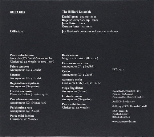 Details: Amazon.ca "What is this music?" Fundamentally, it's an exploration of what happens when an improvisatory instrumental voice (saxophone) is placed into the world of early vocal music, which has elements of both improvisation and formal structure. In reality, it's an adventure in which the four male voices of the Hilliard Ensemble travel the 14th and 15th-century territory of Morales and Dufay, visit the 12th-century Pérotin and roam even earlier ages of plainchant, accompanied by the always sensitive and tasteful , often astonishing, saxophone improvisations of jazz master Jan Garbarek. Sometimes, these new melodies simply accompany; sometimes they transform the common--a routine minor chord, for instance--into a sublime, indescribable moment. The answer to the above question is easy, but it's different for each listener. --David Vernier