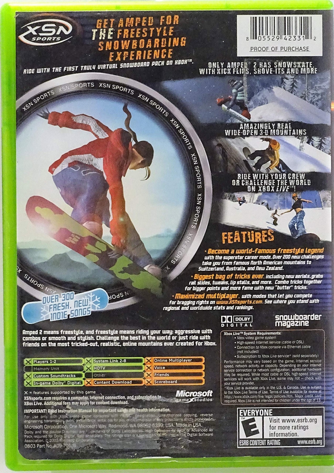 Details: From the Manufacturer Amped 2 is the ultimate freestyle snowboarding experience, offering the largest, most varied trick library of any snowboarding game. Explore vast areas of wide-open, spectacularly rendered real mountains packed with terrain parks designed by world-famous snow park architect, Chris Gunnarson. Play head-to-head with friends in the various multiplayer modes. When you're ready to take it to the next level, connect to Xbox Live to check rankings and challenge the world's best virtual riders. Feel what it's like to live the life of a real professional snowboarder. Travel the globe, and pull sick tricks in front of sponsors, photographers, and fans. Build your fame, and get photos and demo reels in the latest snowboard magazine or video. Climb to the top ranks of the sport, and become a media superstar … all to the sounds of more than 300 killer indie tracks. Features Multiple multiplayer modes: Via split-screen, LAN, or Xbox Live, Amped 2 offers a ton of multiplayer challenges. Whole new bag of tricks: Amped 2 takes all the moves from Amped and adds new aerial tricks; advanced grabs; a full set of styled-out rail slides, tweaks, stalls, and hand and foot plants; and introduces "Butter," the center of a new combo system that allows nose and tail manuals to link tricks together. A new tutorial also teaches first timers the basics of freestyle riding. World-wide nation of snowboarders via Xbox Live: Who's got bragging rights? Now, gamers will be able to find out by challenging riders around the globe to see who's the best. Track stats and check regional and world-wide ladders to see rankings. Trade replays with friends or download new content, including mountains, gear, challenges, and music. Deeper career and portfolio: Gamers now have more opportunities to impress the locals and the press with three levels of media challenges: photos, photo sequences, and video demo reels. As fame builds, sponsors award new gear and boards and banners appear on the mountains, displaying new endorsements won. Ultimate snowboarding environments: Amped 2 goes global with the addition of new mountains, including Laax, Switzerland, Mt. Buller in Australia, and heli-riding Harris Mountain in New Zealand. Fully rendered 3-D environments bring the mountains alive. Clouds cast shadows that move over the hills, and the runs teem with ambient life and sounds, including other riders, snow-cats, people riding the chairlifts, and working snow machines. Professional snowpark design: World-renowned terrain park designer Chris "Gunny" Gunnarson again lends his expertise exclusively to the Amped 2 park design, improving trick placement, adding more trickable objects, and doubling the size of many jumps, making it easier to land in transition. More than 300 core indie tracks: Gamers can ride to their own tracks, burnt to the hard disk, but may never feel the need, with a library of more than 300 original cuts to listen to from the latest up-and-coming indie artists. Greater character customization: Gamers can create and customize their own rider, including hair style, gear, and customized board graphics. With these selections a personality will come to life as he or she rides. Fourteen of the top professionals: Amped 2 features 14 top snowboarding pros, including Jeremy Jones, Mikey LeBlanc, Travis Parker, and Janna Meyen.