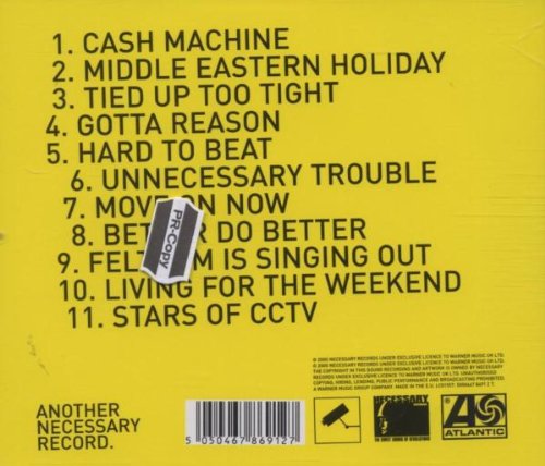 Details: Stars of CCTV is the debut album from Surrey-based Indie rockers Hard-Fi. Fusing together a host of influences, including Happy Mondays-esque baggy, sun kissed Ibizan grooves and even classic two-tone ska, Hard-Fi have crafted an album that buzzes with raw energy and enthusiasm, celebrating the best of British pop culture. Includes the singles 'Cash Machine', 'Tied Up Too Tight' and 'Hard to Beat'. Warner. 2005.