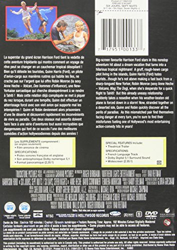 Details: Big-screen favorite Harrison Ford stars in this nonstop adventure hit about a dream vacation that turns into a hilarious tropical nightmare! A gruff, rough-hewn cargo pilot living in the islands, Quinn Harris (Ford) hates tourists ... though he's not above making a fast buck from a sharp-tongued New Yorker, Robin Monroe (sexy Anne Heche -- VOLCANO, WAG THE DOG), when she's desperate for a quick flight to Tahiti! But this already uneasy relationship suddenly takes a nosedive when his weather-beaten old plane is forced down in a storm! Now, stranded together on a deserted isle, Quinn and Robin quickly discover all the perils of paradise. As this mismatched pair find themselves facing danger at every turn, you're sure to find their misfortunes fueling one of Hollywood's most entertaining action-comedy hits in years!