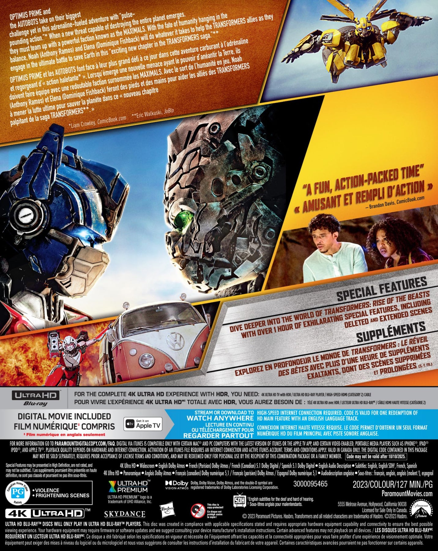 Details: Returning to the action and spectacle that have captured moviegoers around the world, Transformers: Rise of the Beasts will take audiences on a ‘90s globetrotting adventure with the Autobots and introduce a whole new faction of Transformers – the Maximals – to join them as allies in the existing battle for earth.