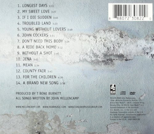 Details: 2008 release includes Audio DVD. About Life, Death, Love & Freedom was produced by T Bone Burnett (O' Brother Where Art Thou, Robert Plant with Allison Krauss). All songs written by John Mellencamp who has been called `the poet laureate of the interstate' and he reaches deep into his soul, bringing forth an album of unparalleled maturity powered by a piercing musical vision. This is a special two disc package CD with high quality audio DVD. This is the first-ever release in CODE, a proprietary audio technology that creates high-definition audio files that are virtually indistinguishable from the original master tapes. John Mellencamp has sold 12 million CDs in the SoundScan era alone! He was inducted earlier this year into the Rock`N'Roll Hall Fame and he is a Grammyr Award winner. The album's first single is 'My Sweet Love'. 14 tracks.
