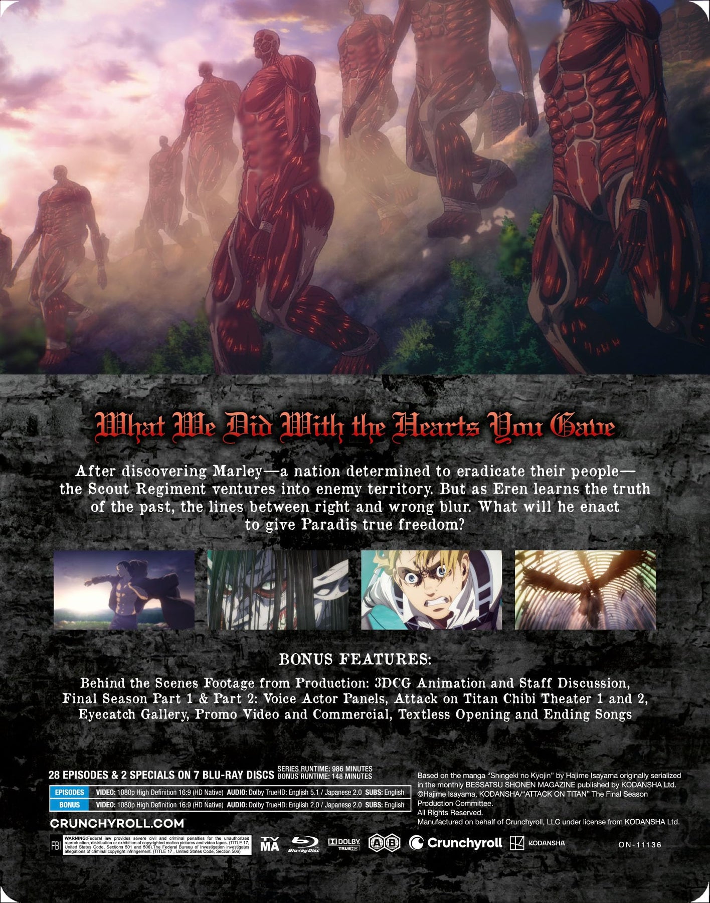 Details: After discovering Marley—a nation determined to eradicate their people—the Scout Regiment ventures into enemy territory. But as Eren learns the truth of the past, the lines between right and wrong blur. What will he enact to give Paradis true freedom?