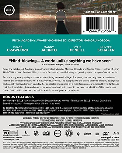 Details: From the celebrated Academy Award®-nominated director Mamoru Hosoda and Studio Chizu, creators of Mirai, Wolf Children, and Summer Wars, comes a fantastical, heartfelt story of growing up in the age of social media. Suzu is a shy, everyday high school student living in a rural village. For years, she has only been a shadow of herself. But when she enters "U", a massive virtual world, she escapes into the online persona of Belle, a gorgeous and globally-beloved singer. One day, her concert is interrupted by a monstrous creature chased by vigilantes. As their hunt escalates, Suzu embarks on an emotional and epic quest to uncover the identity of this mysterious "beast" and to discover her true self in a world where you can be anyone. Bonus Content: The Making of Belle A Conversation with Director Mamoru Hosada The Music of Belle Finding the Voice of Belle Scene Breakdown: The Ballroom Scene Breakdown: The Station Hosoda at Animation is Film Hosada Draws Belle Scene Breakdowns Design Gallery Kylie McNeill Performs "Gales of Song" Trailers ]]>