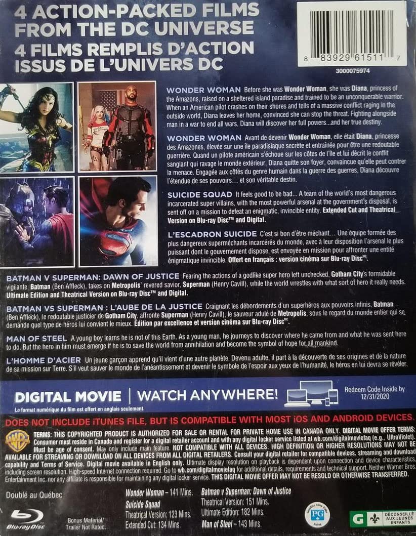 DC 4-Film Collection (Wonder Woman/Suicide Squad: Ext Cut/Batman) - Blu-Ray