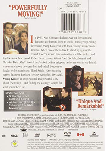 Details: Amazon.ca This strange movie with a niche subject--jazz-loving, dance-loving German kids persecuted by Hitler's men--almost works, thanks to a good cast who seem devoted to the unusual story line. Director Thomas Carter doesn't bring the necessary stylistic oomph to the musical sequences, something that might have pushed the whole production to another, more interesting level of Hollywood dream. Kenneth Branagh makes a particularly effective, wolf-in-sheep's-clothing Nazi official. --Tom Keogh