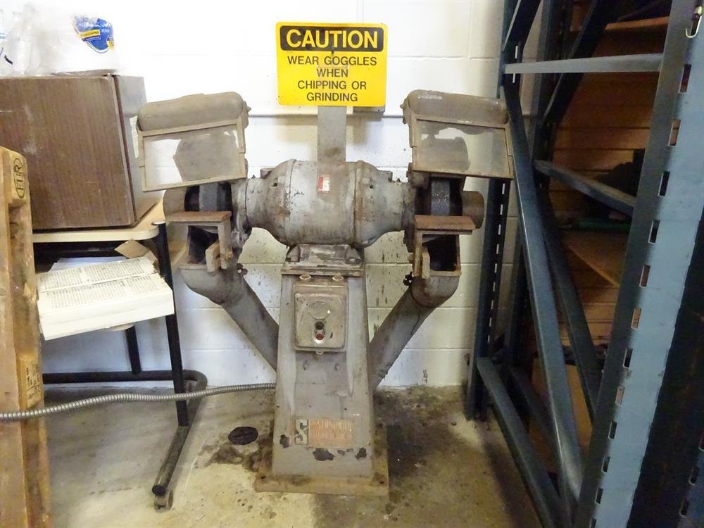 Details: Industrial Standard Electrical Tool Co Cadet 100 heavy duty 12" bench grinder on pedestal, 3 hp electric motor, 220 volt, 60 Hz, phase 3, plug in wall or hard wire,1750 rpm, 8 amp, 1 new grinding wheel 12" x 2" x 1/2", stands 46" high X 36" wide