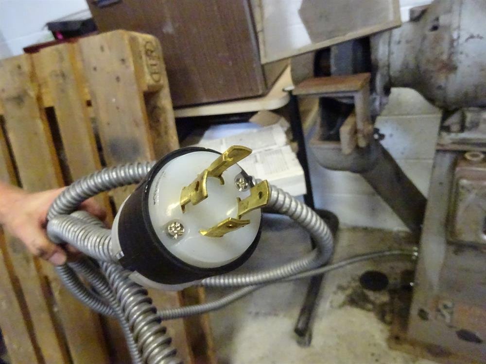 - heavy duty 12" bench grinder on pedestal, 3 hp electric motor, 220 volt, 60 Hz, phase 3, plug in wall or hard wire,1750 rpm, 8 amp, 1 new grinding wheel 12" x 2" x 1/2", stands 46" high X 36" wide