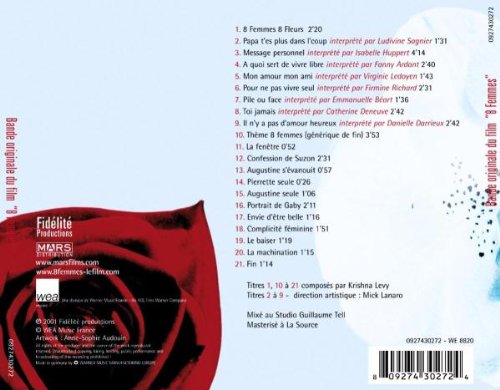 Details: Amazon.ca Produced by the famous film music composer Krishna Levy, who has many soundtracks to his credit, from Cours Toujours to Ali Zaoua, Eight Women is the soundtrack to the film of the same name directed by François Ozon, and which will enter our dark rooms in the coming days. And it's a risky bet that the composer took on himself since it was a question here of bringing in, singing, murmuring, laughing and crying the actresses of the film. Risky bet, therefore, but successful all the same, since we find behind the microphone on these 21 titles which dot the film, no less than Isabelle Huppert, Emmanuelle Béart, Catherine Deneuve, who is not her first experience in song, but also Fanny Ardant, Danielle Darrieux or Virginie Ledoyen. Borrowing at times a few well-known themes from the French variety or evaporating into as many original compositions the rest of the time, Huit Femmes is a clever disc animated by piquant texts and which, as such, could only be interpreted by women. Joyfully hectic like "Dad, you're more into it", or more profound and melancholic like "Personal Message", Eight Women is a superb record that gently reveals the moods of the fairer sex. --Toma Product Description Features Vocals Performances by Catherine Deneuve, Fanny Ardant, Virginie Ledoyen, Isabelle Huppert and Emmanuelle Beart.