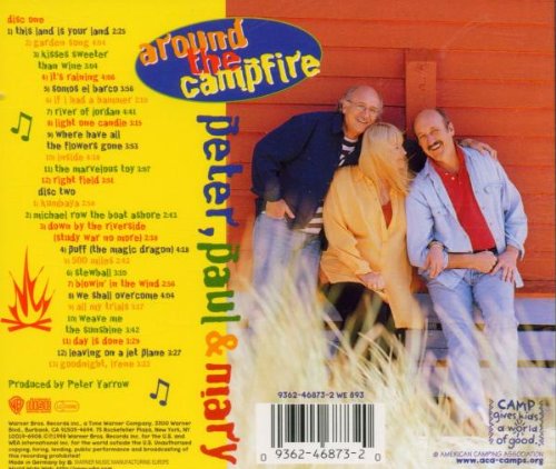 Details: Amazon.ca The indefatigable folk trio of Peter, Paul & Mary is a wonderful focal point for younger listeners, toward whom this two-CD set is clearly geared. With a decidedly left-leaning approach to its craft--at least as far as the lyrics are concerned--the group selects great examples from its lengthy recording career. "If I Had a Hammer" veers from solemn consideration to exultant declaratives, working excellently enough that adults will certainly dig the music. Ditto for "Down by the Riverside" and "Light One Candle," which booms with an added mixed chorus, giving the song the power of a protest anthem. Not to paint this as an altogether-too-serious effort, though--"This Land Is Your Land" and "Puff (The Magic Dragon)" sweep the ears of kids up in deceptively minimal movements by the trio. Put succinctly, these two CDs mix kid-oriented and adult-oriented music with just the right touch. --Andrew Bartlett Product Description Includes 25 songs just made for campfire sing-alongs! Includes Puff (the Magic Dragon); Blowin' in the Wind; If I Had a Hammer; Stewball; Leaving on a Jet Plane; Day Is Done; This Land Is Your Land; Kisses Sweeter Than Wine, and more.