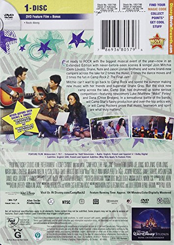 Details: Get ready to ROCK with the biggest musical event of the year -- now in an Extended Edition with never-before-seen scenes & songs! Join Mitchie (Demi Lovato), Shane, Nate and Jason (Jonas Brothers), and some brand-new campers across the lake for 2 times the music, 2 times the dance moves and 2 times the fun in CAMP ROCK 2: THE FINAL JAM! Mitchie can't wait to go back to Camp Rock and spend the summer making new music with her friends and superstar Shane Gray. But the slick new camp across the lake, Camp Star, has drummed up some serious competition -- featuring newcomers Luke (Matthew "Mdot" Finley) and Dana (Chloe Bridges). In a sensational battle of the bands, with Camp Rock's future at stake, will Camp Star's flashy production and over-the-top antics win out, or will Camp Rockers prove that music, teamwork and spirit are what truly matter?