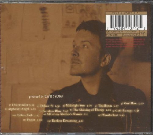 Details: Amazon.ca Perhaps the finest achievement of David Sylvian's enigmatic career, Dead Bees on a Cake represents a graceful personal and spiritual exploration. Set to a lush, ethereal, engaging bed of distinctive and sophisticated pop arrangements, it combines the best qualities of Sylvian's post-Japan work. Four years in the making, it is artful and tasteful from the opening Bryan Ferry-style ballad "I Surrender" to the bluesy "Midnight Sun" and the delightful "Krishna Blue." There are contributions from sometime collaborator Ryuichi Sakamoto as well as a classy, eclectic group of musicians including Bill Frisell, Marc Ribot, Talvin Singh, and Sylvian's brother, Steve Hansen, but Sylvian is definitely in the fore here. Dead Bees on a Cake will be a surprising discovery for fans of Sade, John Martyn, and the Blue Nile, and it may afford Sylvian overdue recognition as an uncommonly gifted pop composer and singer. --John Sutton-Smith Product Description David Sylvian began his career as composer and vocalist with the innovative British band Japan. Following a collaboration with Ryuichi Sakamoto - Sylvian's 1st worldwide chart success, "Forbidden Colours" - he recorded several solo albums, later striking up a musical partnership with guitarist Robert Fripp (King Crimson). Dead Bees on a Cake continues his collaborative efforts, including contributions from guitarist Marc Ribot and Brit-Asian producer and tabla player Talvin Singh.