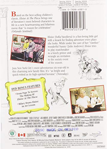 Details: Based on the best-selling children's classic, ELOISE AT THE PLAZA brings one of literature's most beloved characters to life in a new heartwarming and hilarious movie that "is reason for celebration" (Orlando Sentinel). Eloise (Sofia Vassilieva) is a fun-loving little girl with a knack for finding adventure every place she looks. While under the care of her "rawther" wonderful Nanny (Julie Andrews), Eloise tries to play matchmaker to a lonely prince and wrangle an invitation to the society event of the season. Join New York City's most adventurous six-year-old in this charming new family film. It's "as bright and quick-witted as its high-spirited heroine" (Newsday).