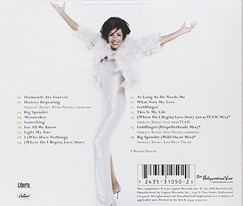 Details: The most enduring James Bond diva has spent more time on the UK charts than any other British female performer; here are her hit Bond themes Goldfinger and Diamonds Are Forever ; her Moonraker theme; her recording of History Repeating with the Propellerheads; her UK hit version of George Harrison's Something , and 11 more of Ms. Bassey's best!
