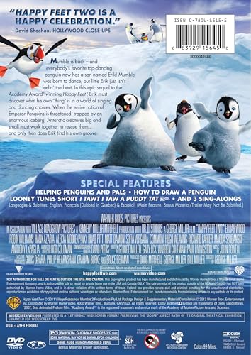 Details: The sequel to the Academy Award(R)-winning animated smash hit, "Happy Feet 2" returns audiences to the magnificent landscape of Antarctica, reuniting us with the world's most famous tap-dancing penguin, Mumble (Elijah Wood), the love of his life, Gloria (Alecia Moore a.k.a. Pink) and their old friends Ramon and Lovelace (Robin Williams). Mumble and Gloria now have a son of their own, Erik (EG Daily), who is struggling to find his own particular talents in the Emperor Penguin world. But new dangers are threatening the penguin nation, and it's going to take everyone working--and dancing--together to save them.