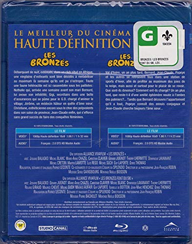 Details: AUDIO TRACK IN FRENCH (Only French Version - No English Options) Les Bronzés is a French film by Patrice Leconte released on November 22, 1978. It features the Splendid troupe based on his play: Amour, Coquillages et Shellfish. This film parodies Club Méditerranée type holiday clubs. It was a decent success on its theatrical release (2.2 million admissions). Over time, it has become a classic of popular French cinema. Gigi, Jérôme, Christiane, Jean-Claude and Bernard arrive at the same time at the Med club in Assinie in Côte d'Ivoire. Bernard comes to meet his wife Nathalie, who has been living in the village for a week already. Popeye, head of sports, Bobo and Bourseault, animators, welcome them. Immediately, affinities are established in the small group where everyone has come in the hope of making new conquests. AUDIO TRACK IN FRENCH (Only French Version - No English Options) Les Bronzés font du ski is a film starring the Splendid troupe, directed by Patrice Leconte and released in 1979. It follows the film Les Bronzés (1978). The friends from the first part meet up in the winter sports resort of Val-d'Isère where Jérôme, Gigi and Popeye work. Jérôme and Gigi are now married: Gigi runs a creperie while Jérôme practices in his medical practice. Nathalie and Bernard, reconciled and fairly “new rich”, own a timeshare apartment. Jean-Claude, always looking for a soul mate and still just as bad at seduction, tries desperately to hit on everything that moves. Christiane arrives with a married man who is much older than her, Marius.